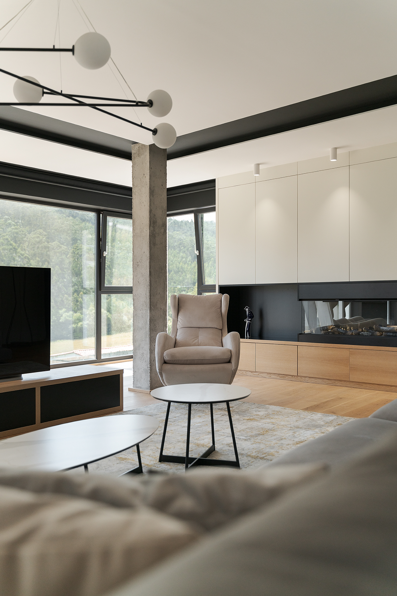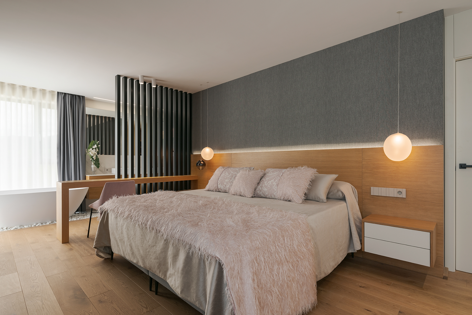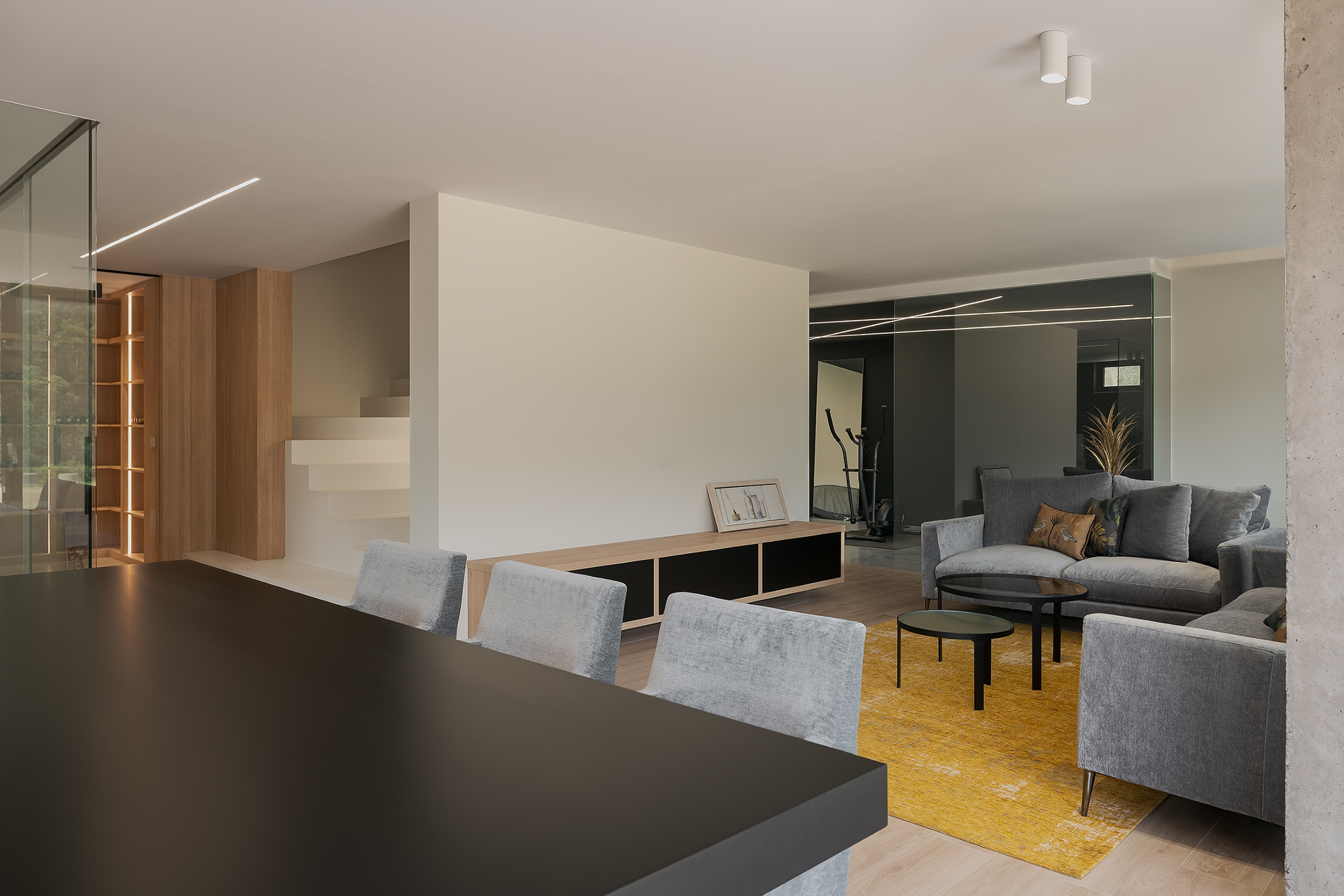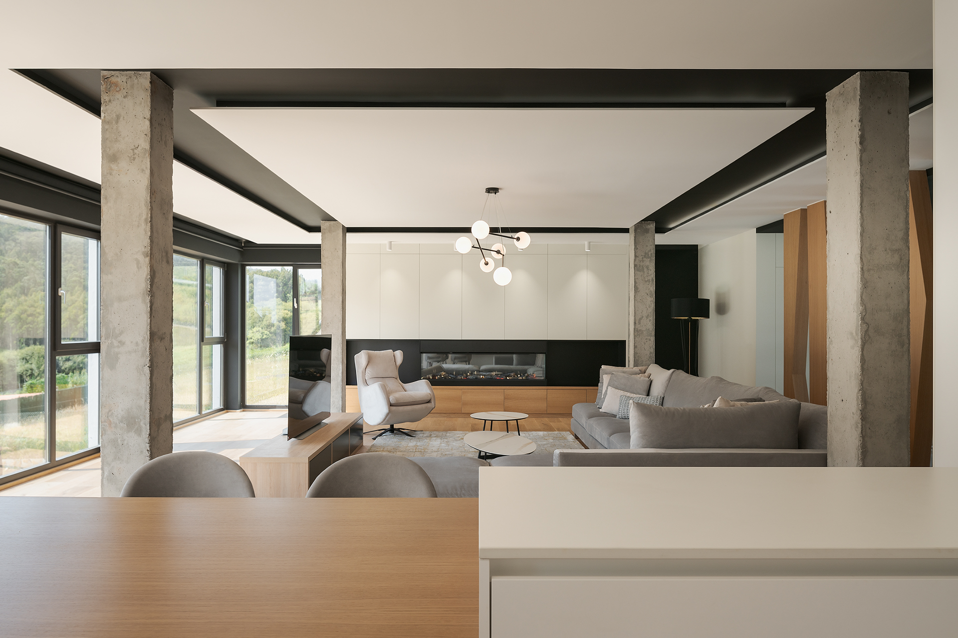 Esta vivienda a medio construir, se realiza un rediseño integral para continuar con la obra y dotar de vida este gran hogar.Los grandes ventanales y diáfanos espacios destacan en esta vivienda unifamiliar, en la que destaca el diseño y la elegancia de sus formas y decoraciones. Dividida en tres plantas, el sótano posee una zona de gimnasio, despacho, vinoteca y zona de comidas. La planta principal y con acceso directo del exterior, se dispone la zona de día con un gran salón que cuenta con chimenea y cocina abierta. Además, cuenta con un dormitorio y baño de cortesía. La planta superior se destina a la zona de noche en la que se encuentra el dormitorio principal con baño en suite y vestido. También cuenta con otro dormitorio con baño.