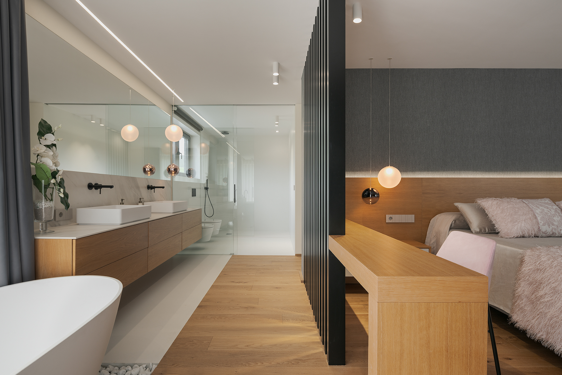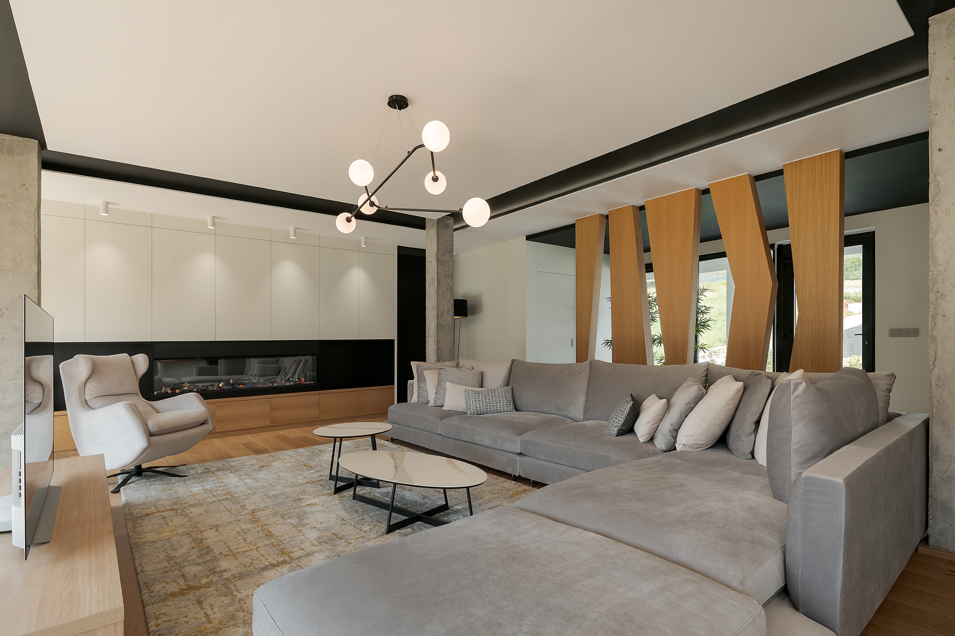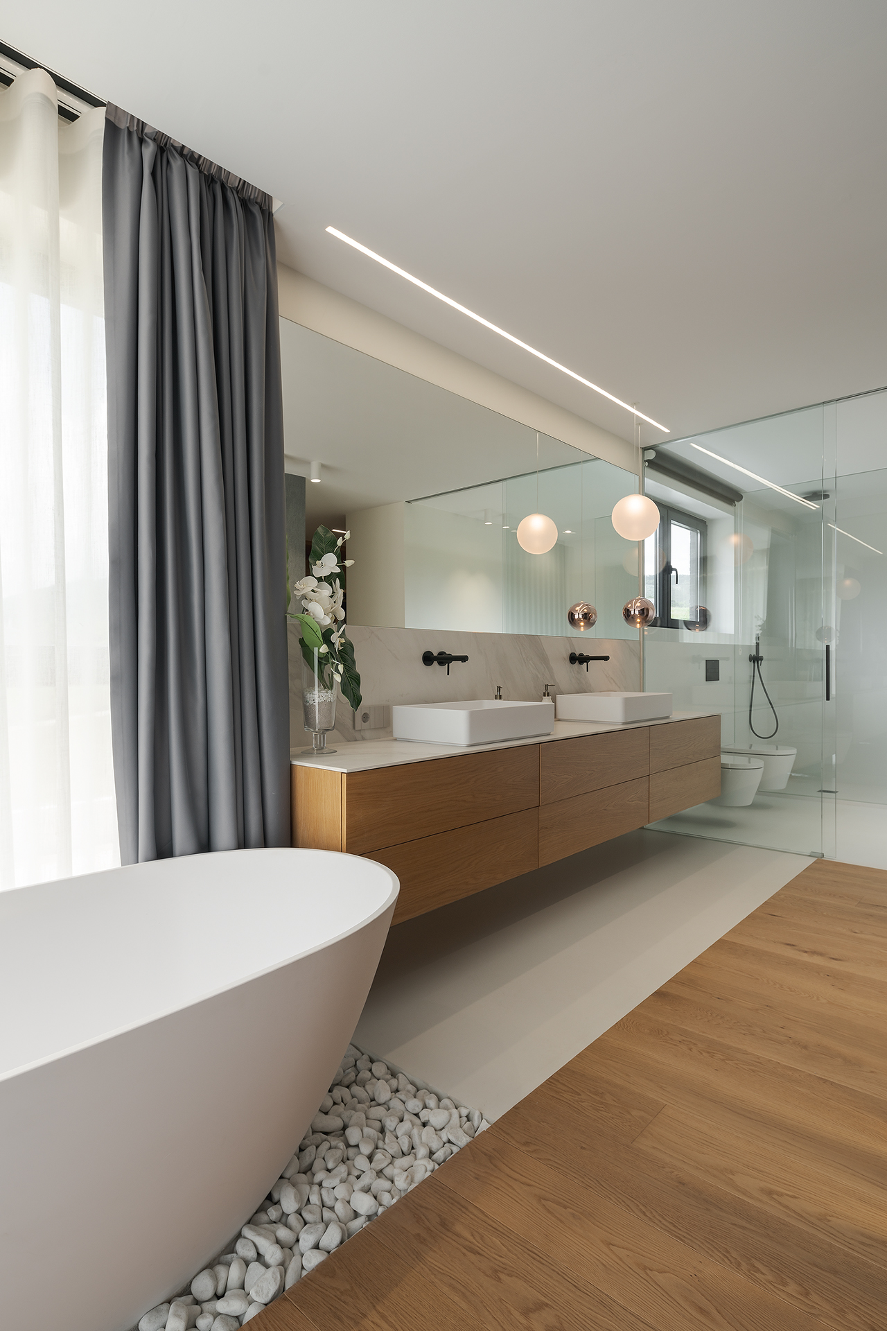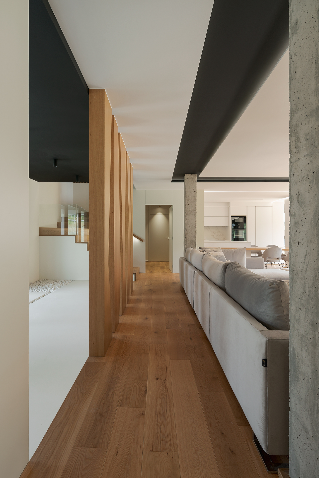 Esta vivienda a medio construir, se realiza un rediseño integral para continuar con la obra y dotar de vida este gran hogar.Los grandes ventanales y diáfanos espacios destacan en esta vivienda unifamiliar, en la que destaca el diseño y la elegancia de sus formas y decoraciones. Dividida en tres plantas, el sótano posee una zona de gimnasio, despacho, vinoteca y zona de comidas. La planta principal y con acceso directo del exterior, se dispone la zona de día con un gran salón que cuenta con chimenea y cocina abierta. Además, cuenta con un dormitorio y baño de cortesía. La planta superior se destina a la zona de noche en la que se encuentra el dormitorio principal con baño en suite y vestido. También cuenta con otro dormitorio con baño.