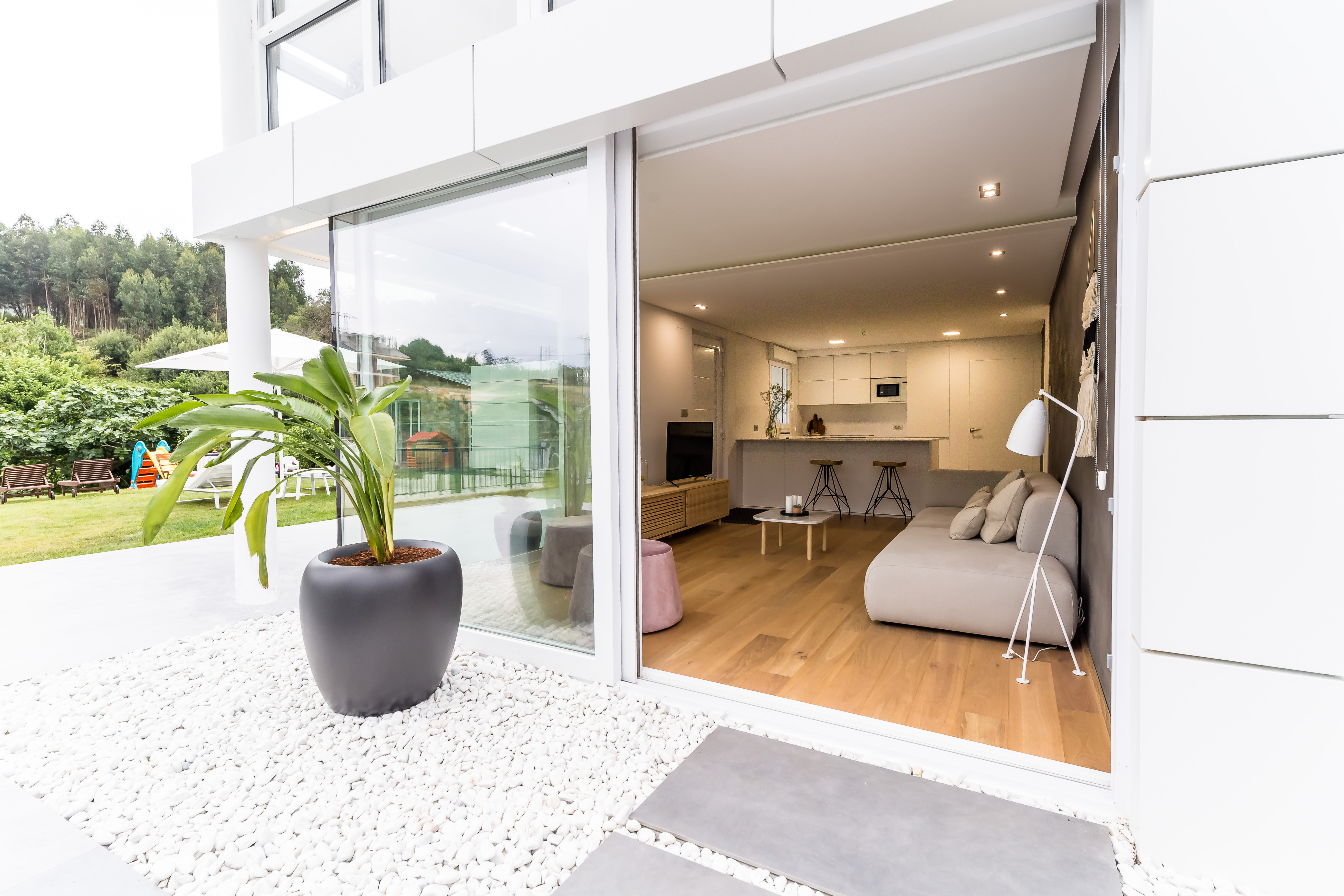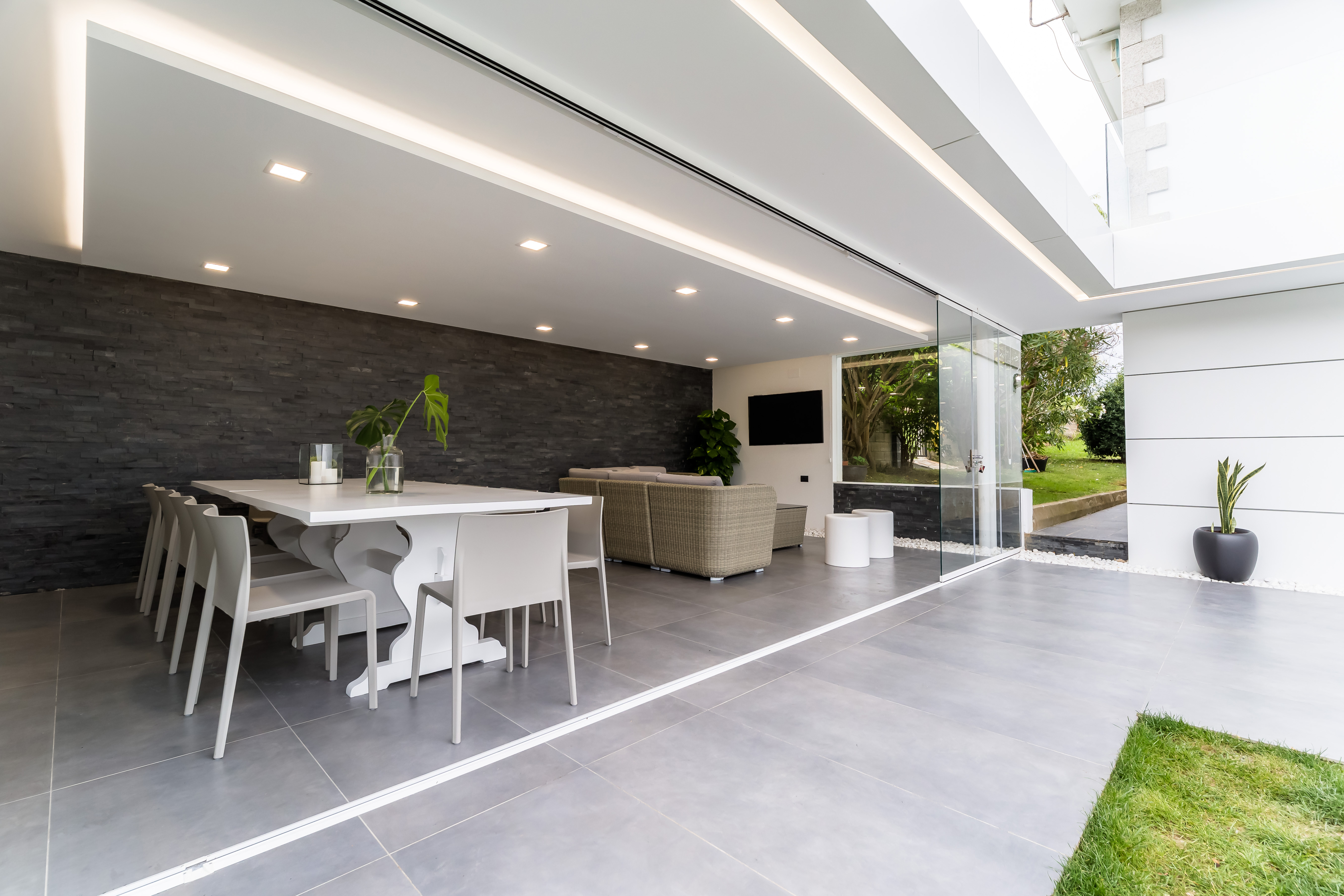 La planta baja de esta casa en el rural cerca de la playa, se diseña para destinarlo a zona de reunión familiar. Cuenta con zona de descanso y baño. La zona principal se destina a barbacoa y comedor, cerrado con grandes ventanales para los días más frescos o lluviosos, hacen al usuario parecer estar al aire libre. Sus finas y cuidadas líneas conforman este lugar de esparcimiento y descanso conjunto, su delicada decoración incremental la sensación de calma y relax.FOTOS: JOSÉ MORO