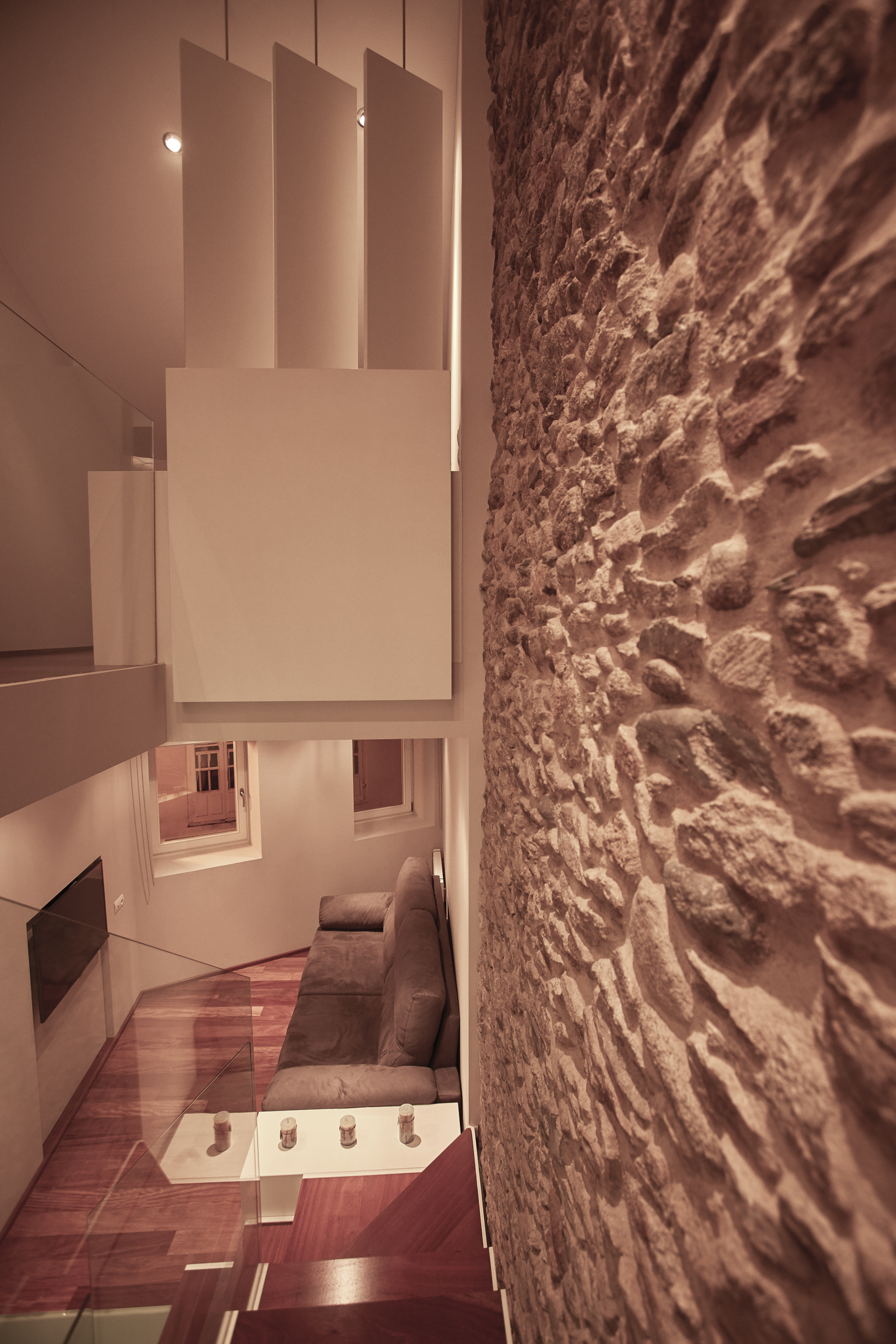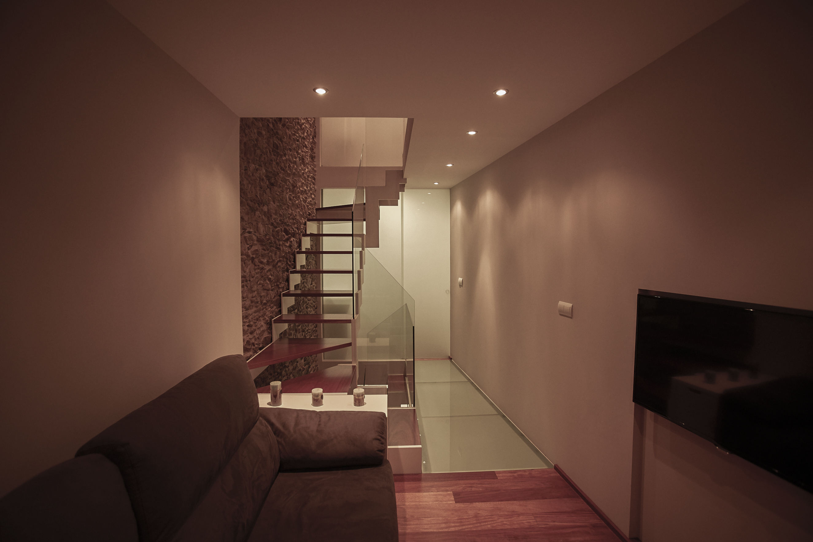 Esta vivienda unifamiliar del casco histórico de Viveiro, responde a una tipología de construcción típica de una familia pequeña que vivía de su pequeño comercio en la planta baja de la casa.En este proyecto nos encontramos una planta trapezoidal y dispuesta en tres niveles. En la planta baja estaba la tienda familiar y encima la parte vividera. En la rehabilitación disponemos en la planta baja la cocina, en la primera el estar y en el bajo cubierta el dormitorio.