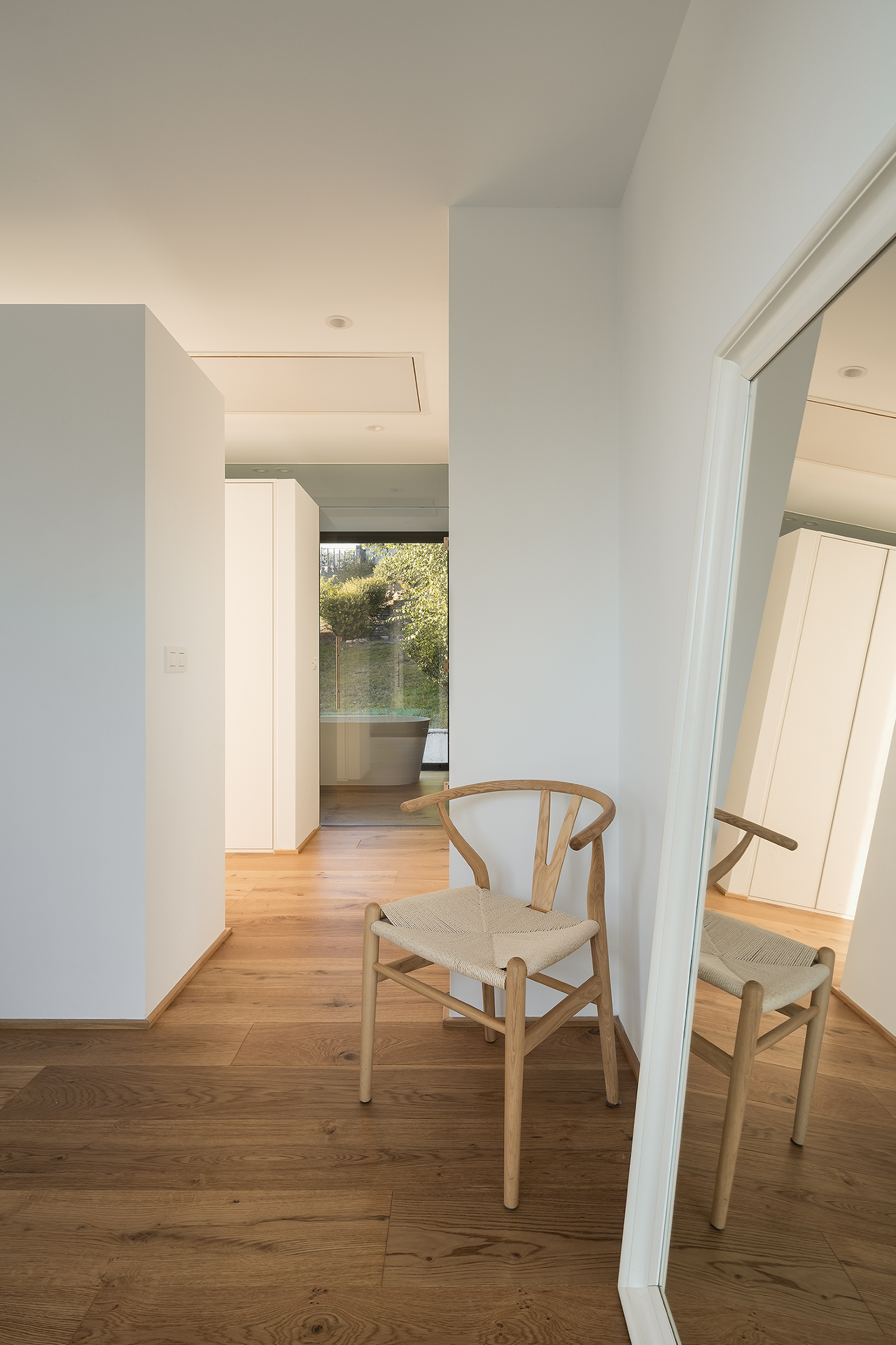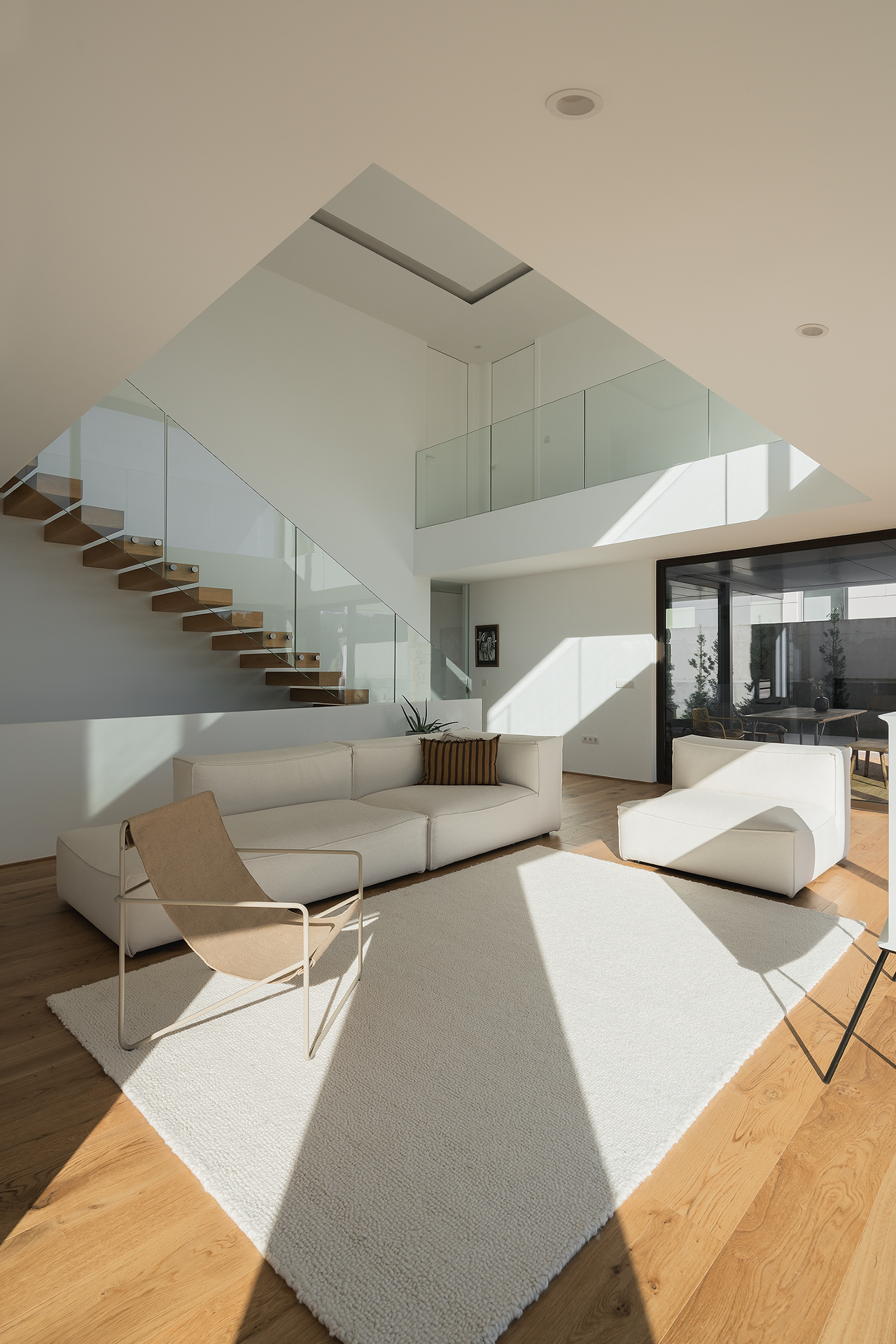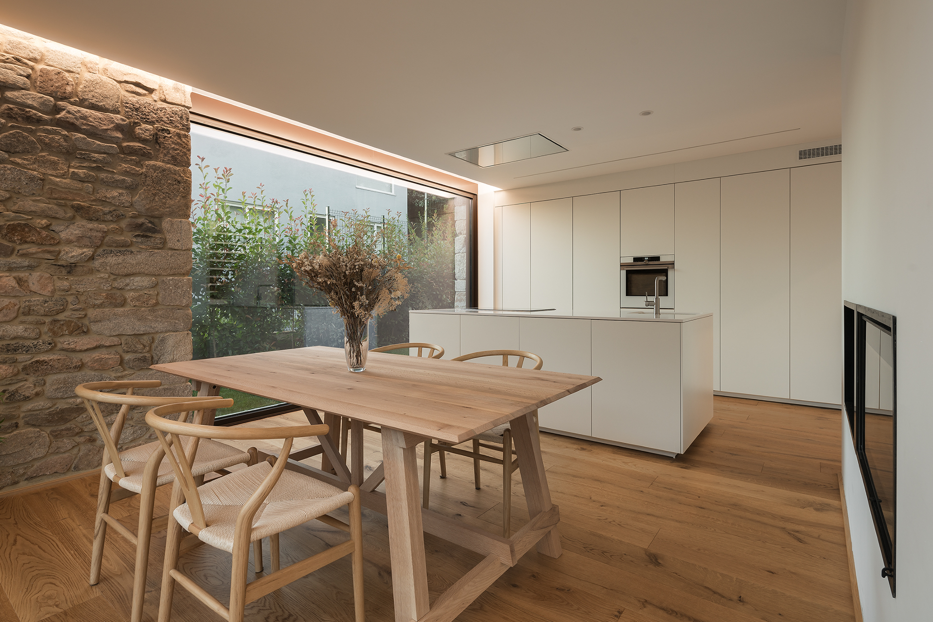 Con el río Miño al frente, esta vivienda de obra nueva en la capital Lucense, se alza como un oasis en la ciudad. Las líneas sencillas y rectas, la cubierta a dos aguas y la elección de materiales, nos evocan al pasado de la construcción típica gallega, pudiendo recordar a un gran hórreo moderno.Los espacios, tremendamente abiertos e interconectados, permiten la entrada de luz a todas las estancias de esta casa y bañar todos sus rincones. El estudio ha optado por tonalidades claras y naturales para dotar a esta vivienda de mayor serenidad, relax y paz. El interior es un amplio recorrido visual sin obstáculos. Los grandes espacios, la doble altura del salón y elementos permeables hacen que la casa juegue con el invitado y disfrute de sus increíbles calidades.