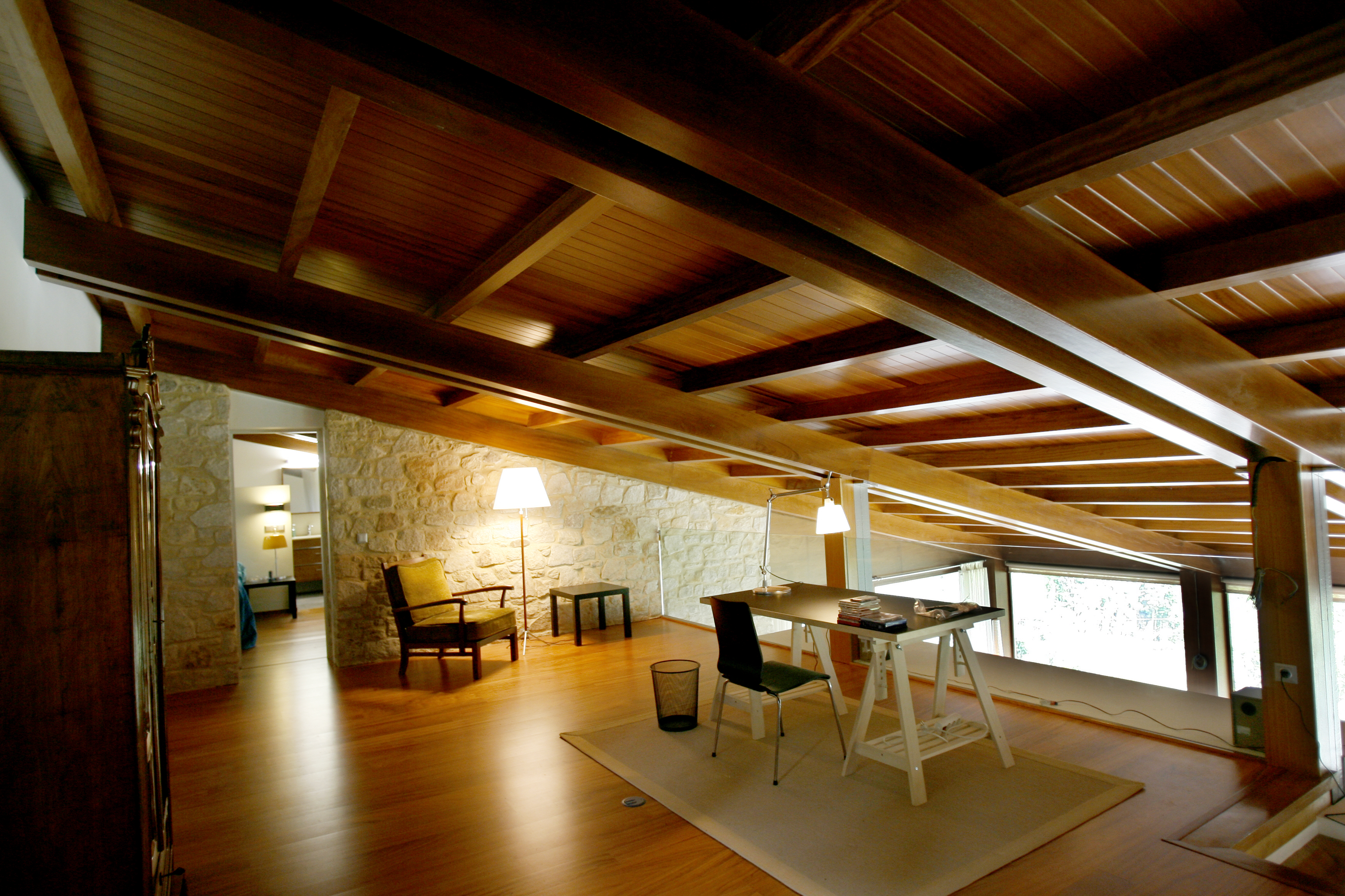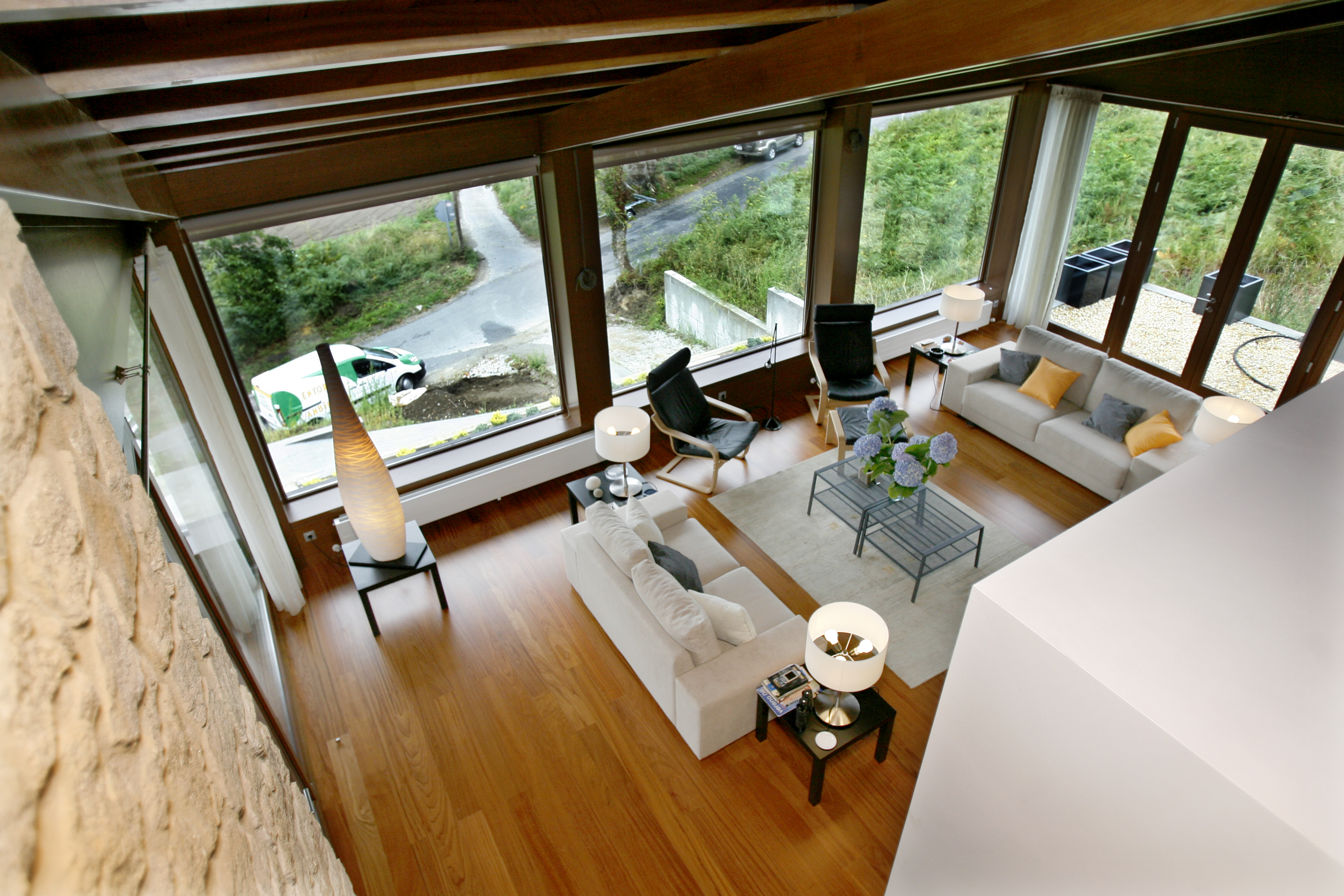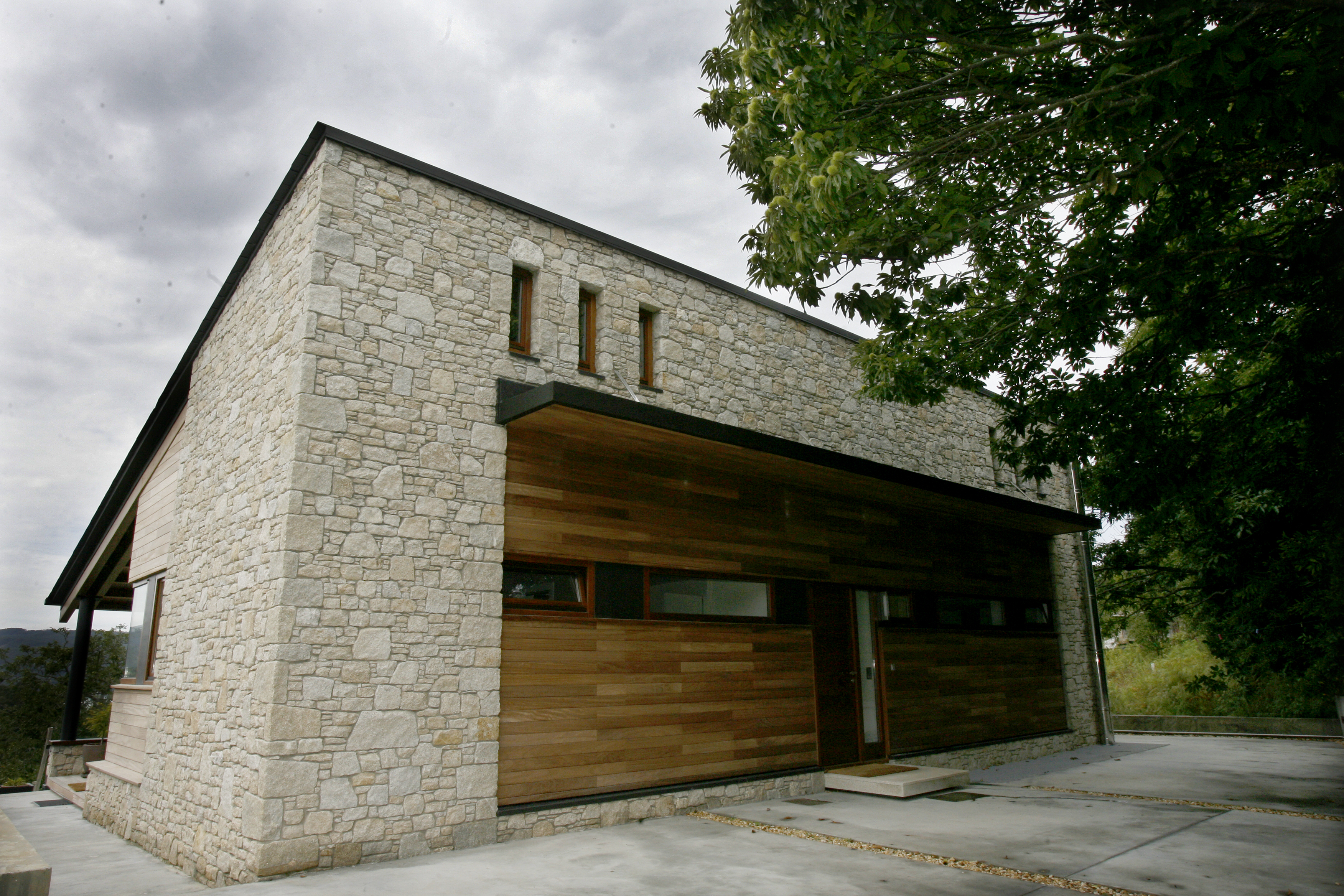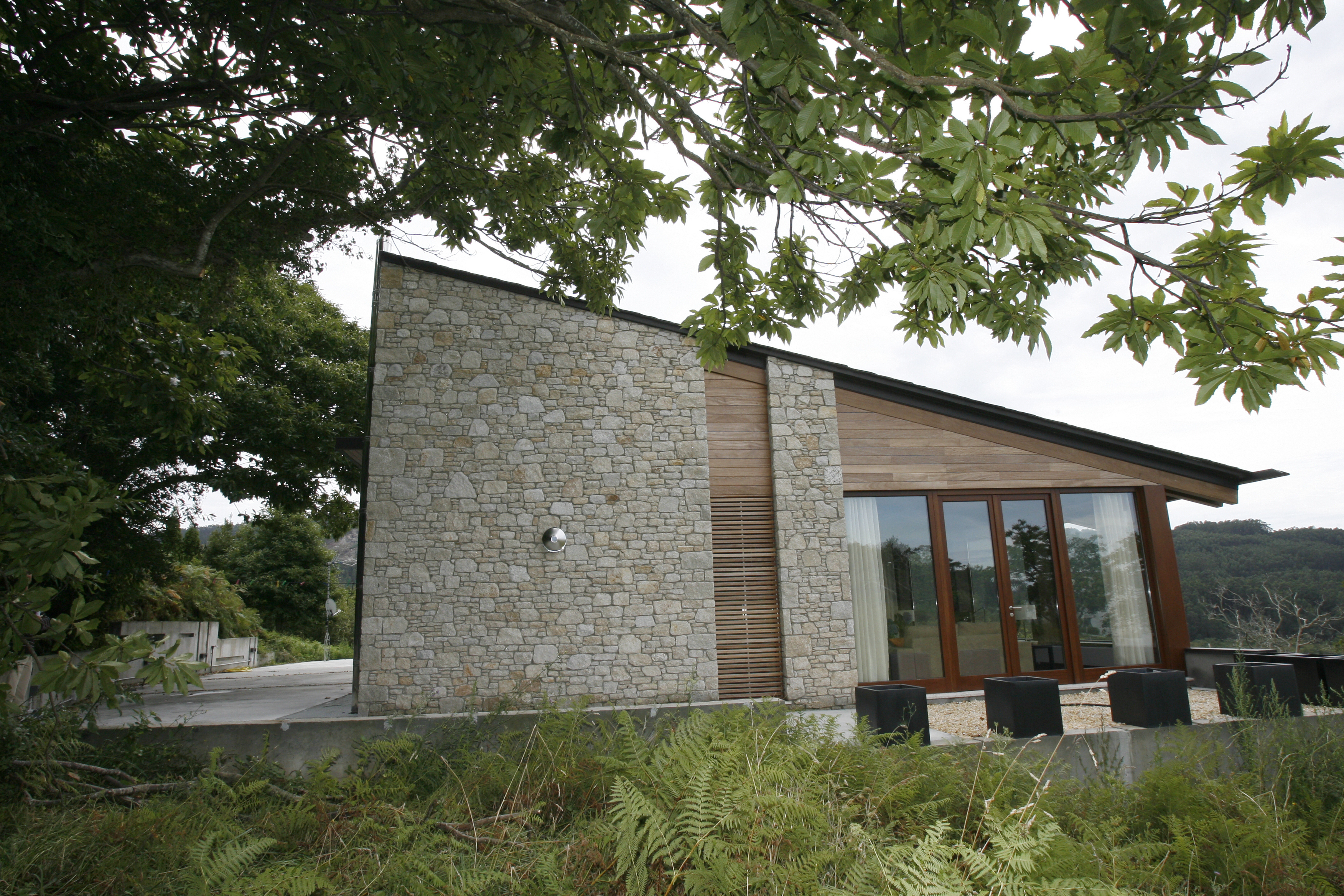 La casa se ubica frente a la Ría de Viveiro, el desnivel de la parcela determina la disposición del programa funcional. Para aprovechar las mejores vistas, la vivienda se invierte con respecto a la configuración tradicional.La planta de día se dispone en la planta alta para poder disfrutar de las vistas al mar. La zona de noche se sitúa en el nivel inferior, donde al ser semienterrada por la parte posterior parece de una sola planta. Posee acceso por ambas fachadas y una amplia terraza hacia el frente. El amplio salón a doble altura y abuhardillado, que junto a la piedra empleada le confieren una estética oriunda mientas que en conjunto se observa la modernidad de su arquitectura.