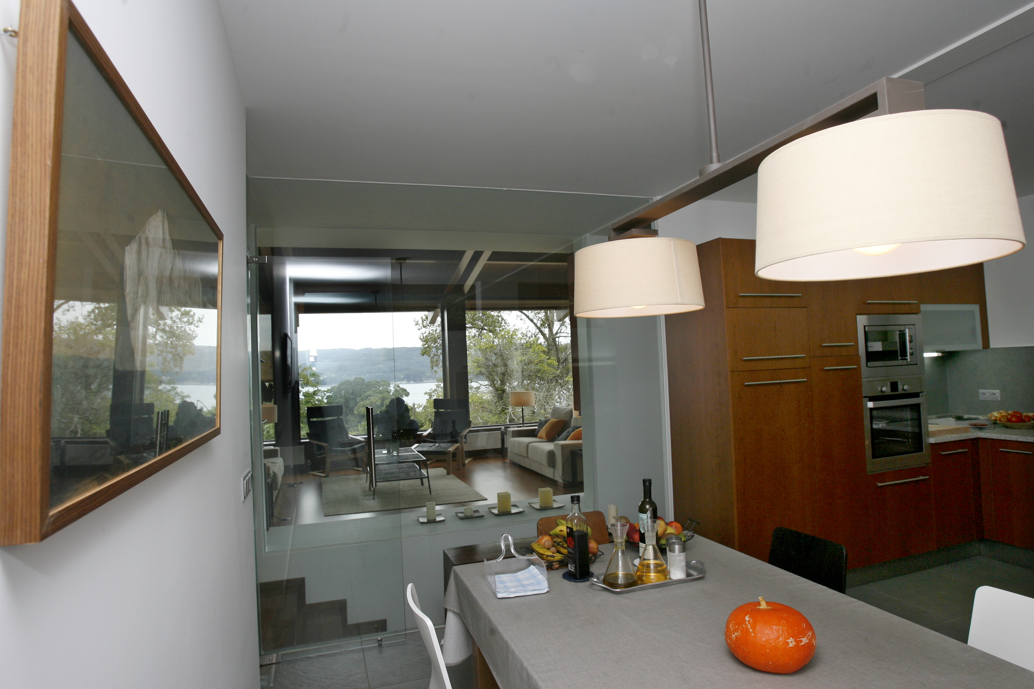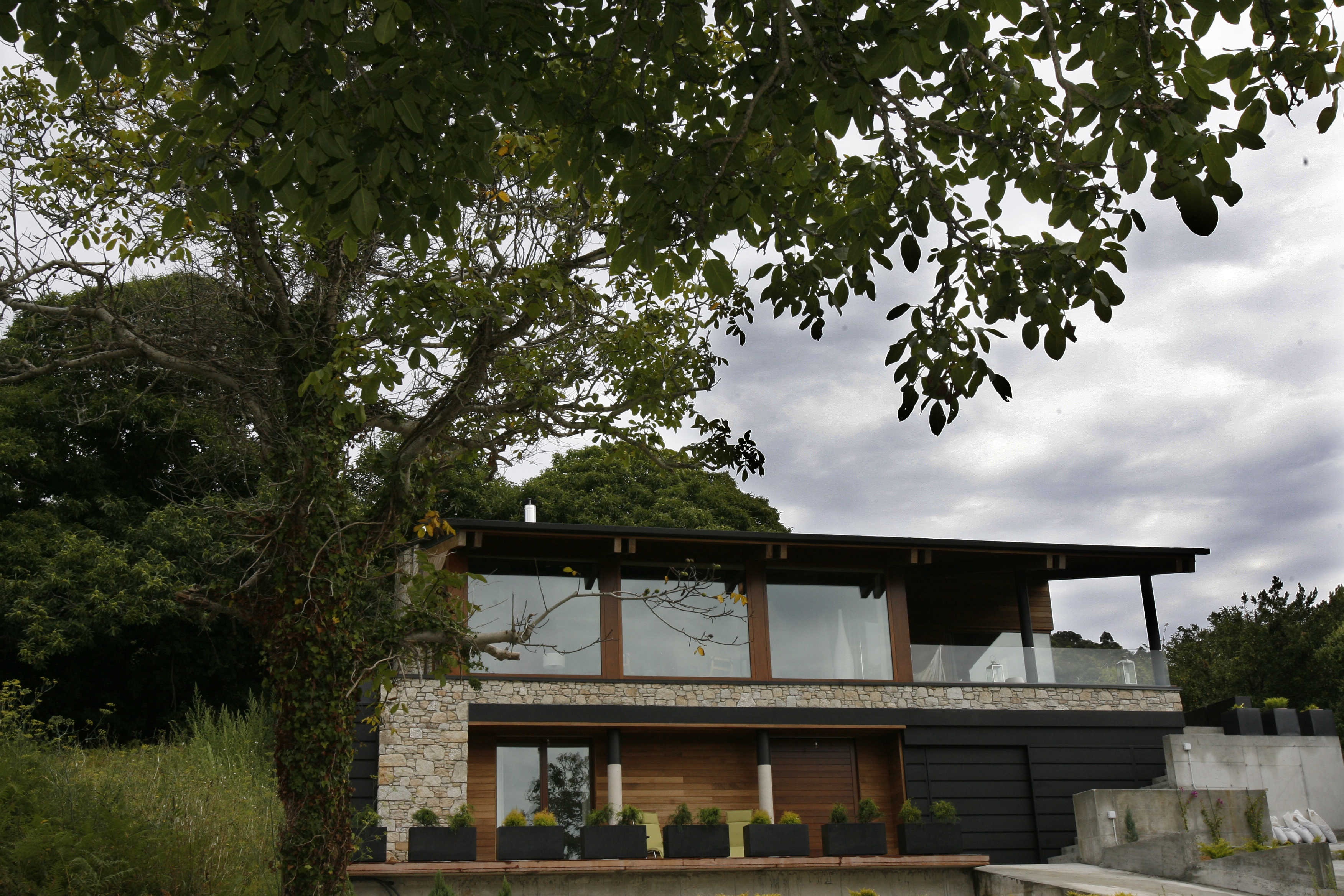 La vivienda de porte horizontal y arquitectura híbrida, se erige como balcón hacia el mar, donde la serenidad prima en este remanso de paz rodeada de árboles autóctonos y vistas al paisaje marino de la playa de Area.