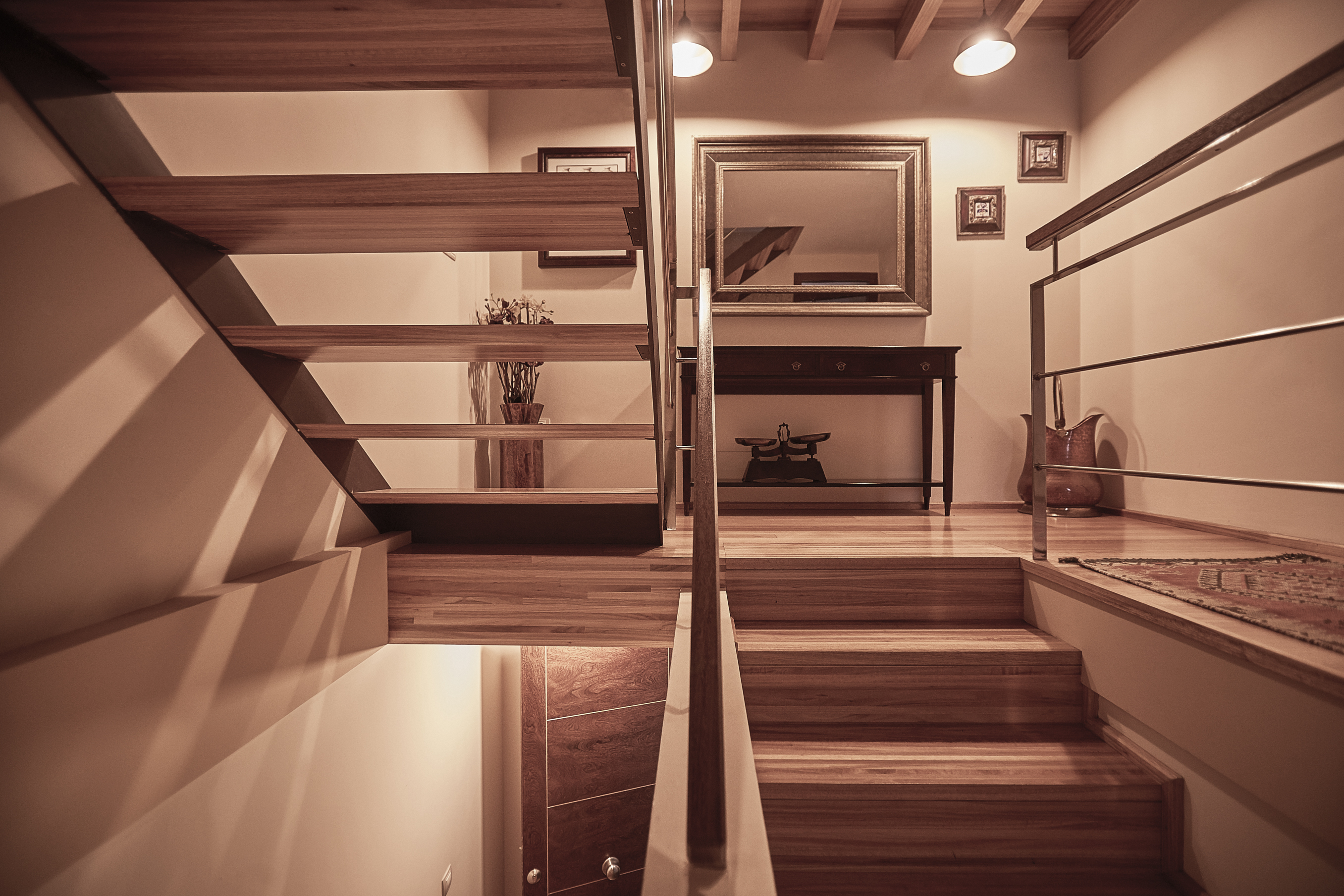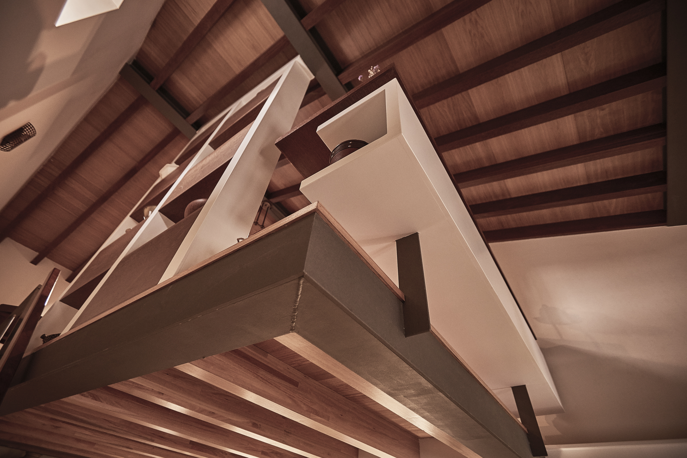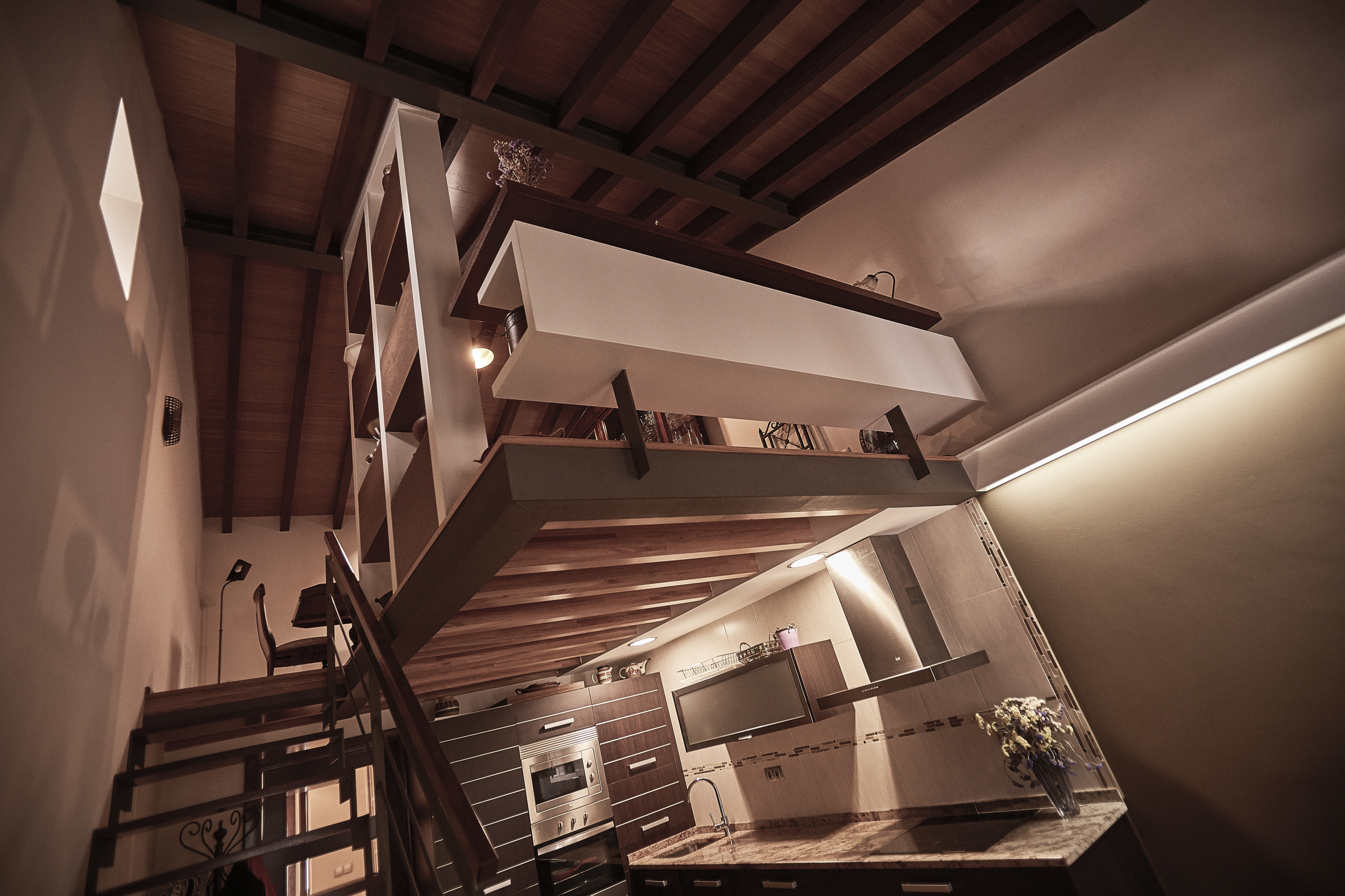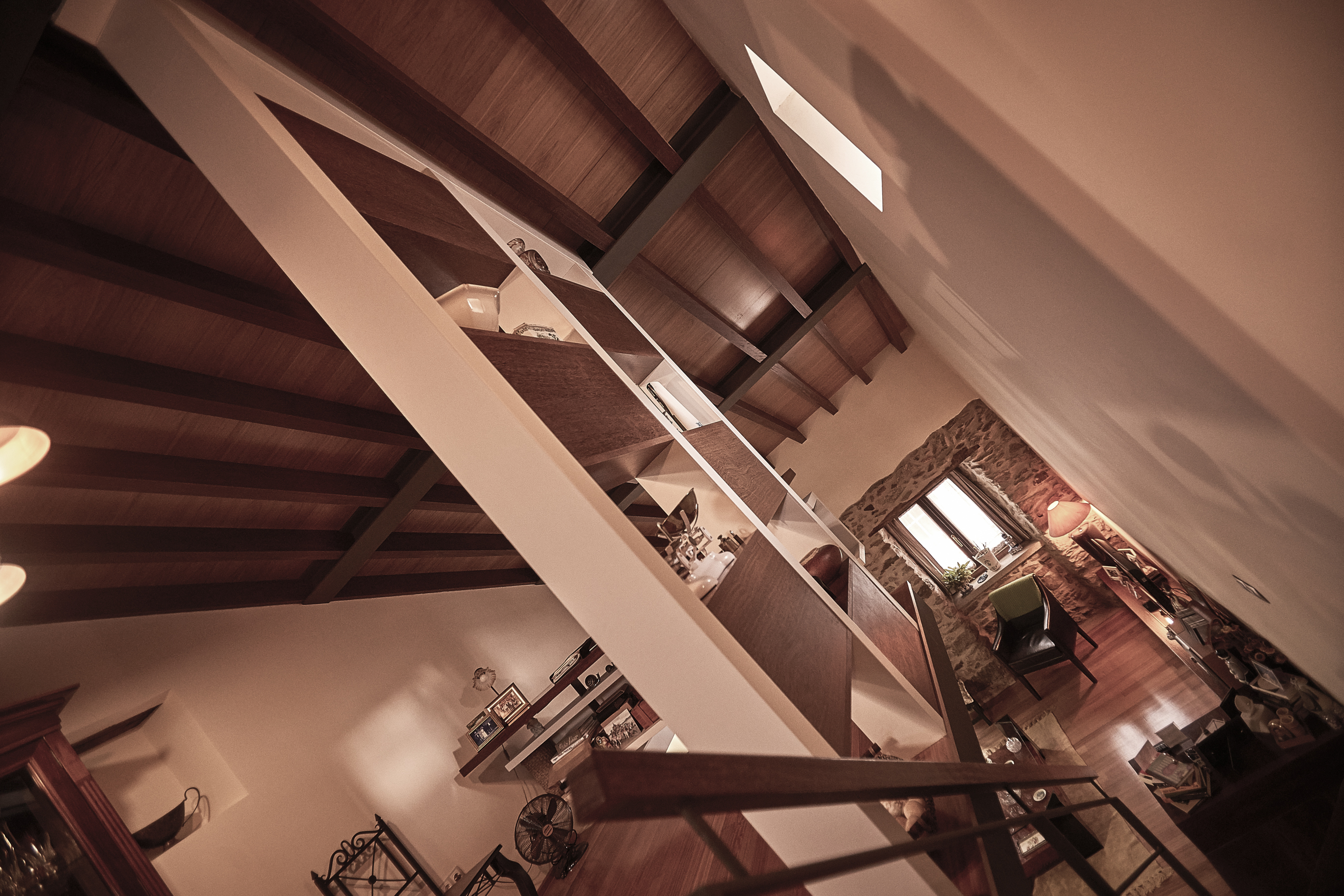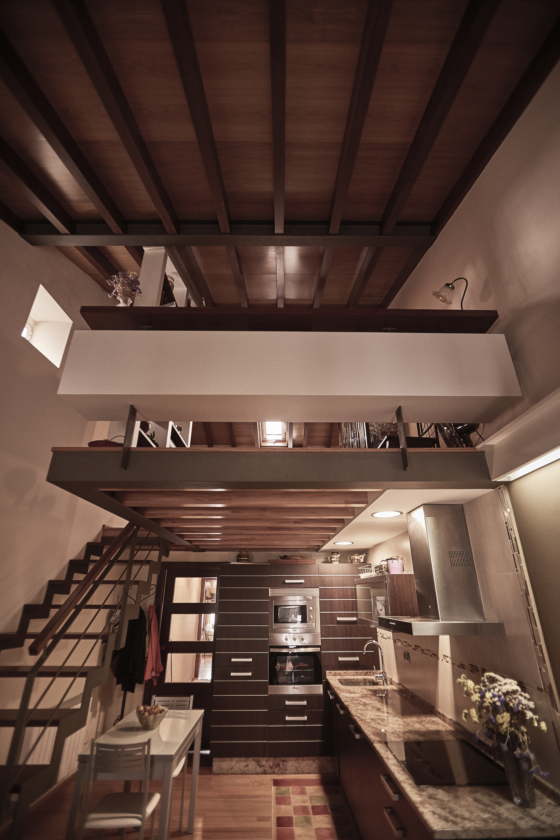 La primera planta se destina a la zona de noche de la primera vivienda, con acceso privado se accede a la zona de día que ocupa la mitad de la segunda planta. En el otro lado de la vivienda se encuentra uno de los dormitorios de la segunda vivienda, que se completa con la tercera planta, donde se dispone la zona de día y otro dormitorio, sigue en la planta bajo cubierta con un estudio abierto a la planta de abajo.